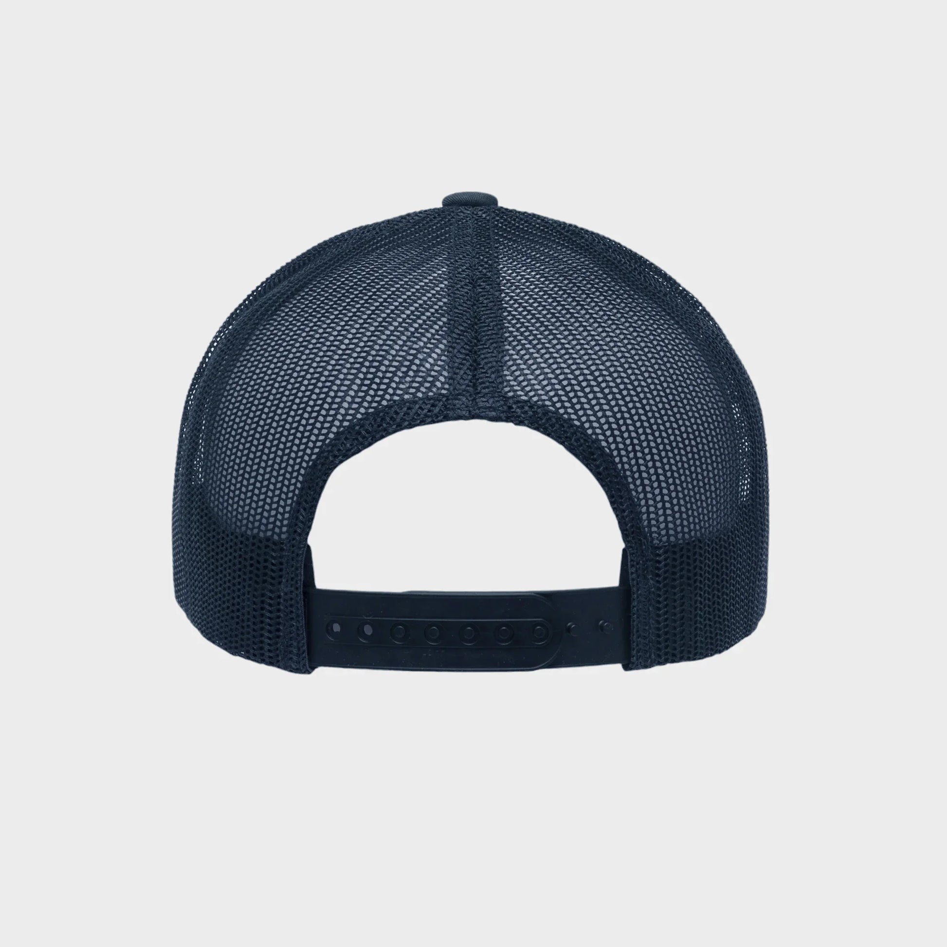 Our badge logo trucker cap in navy provides a classic style and fit with an adjustable mesh back.